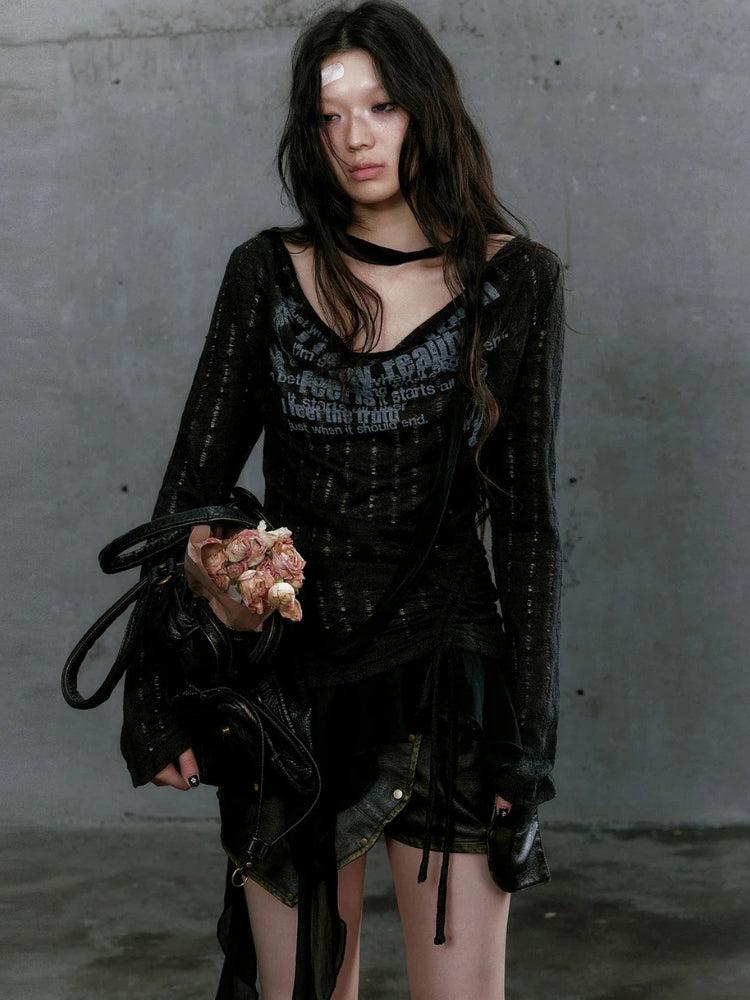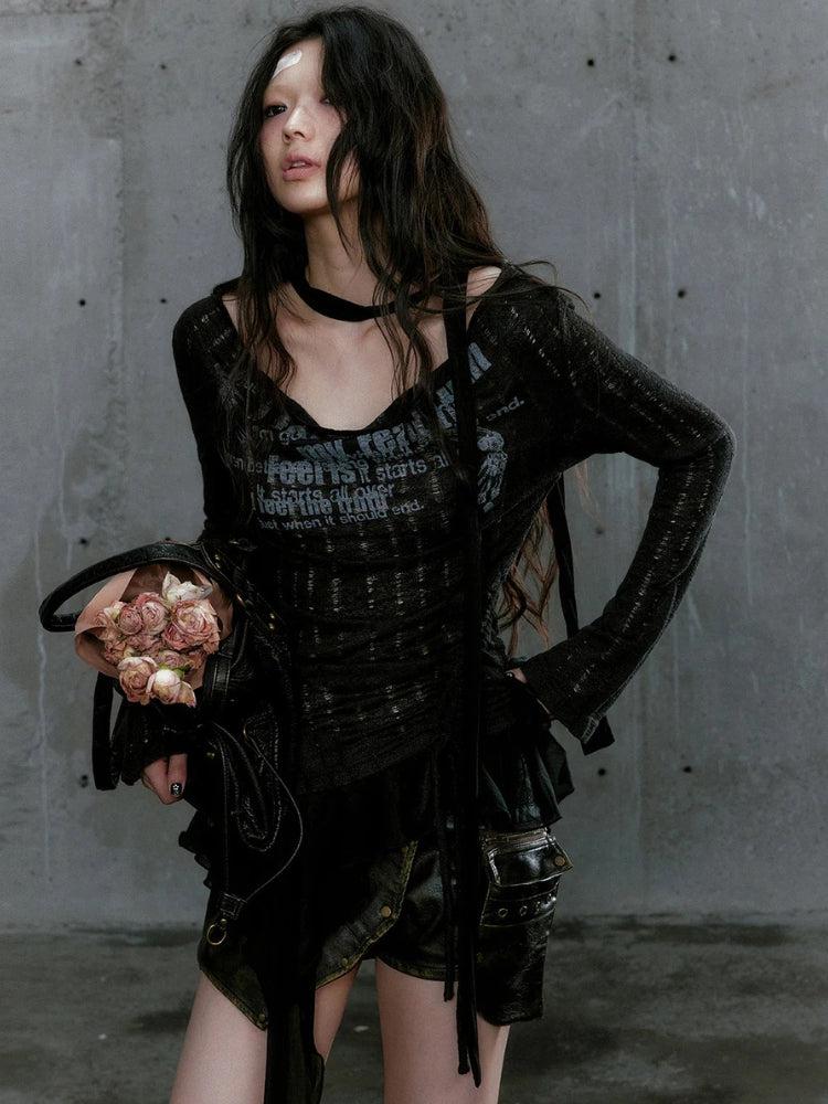 Turn heads with this Grunge Neck Tie Ruffled Top. The edgy neck tie detail pairs perfectly with romantic ruffles for a look that's unexpectedly cool and undeniably fun. This piece walks the line between sweet and moody, making it ideal for anyone who refuses to pick just one aesthetic. Style it solo or layer it for maximum impact. Grunge meets girly in the best way possible.