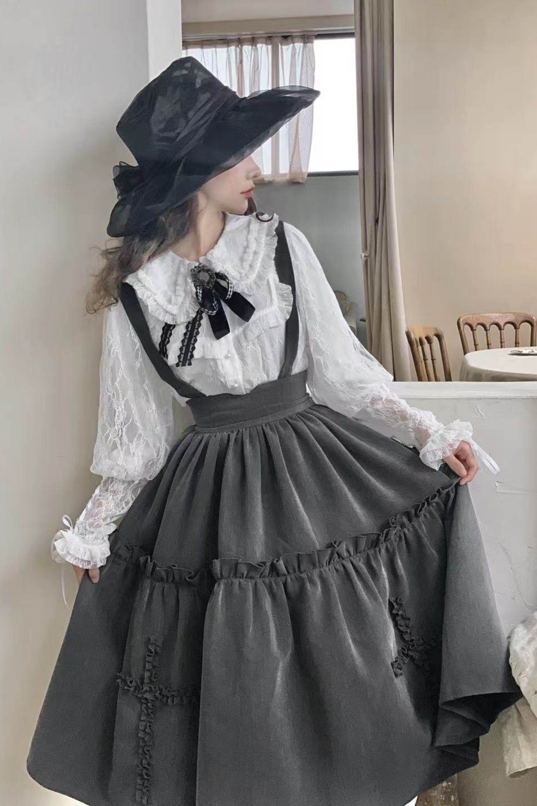 Embrace vintage charm with this Retro Style Lolita Suspender Skirt, a playful take on classic lolita fashion. Featuring adjustable suspenders and a flattering A-line silhouette, this skirt combines nostalgic appeal with modern comfort. Perfect for creating an enchanting, doll-like aesthetic, it pairs beautifully with blouses, cardigans, and platform shoes. Available in sizes S, M, and L with a total length of 90cm, this piece is ideal for lolita enthusiasts and anyone seeking a whimsical, retro-inspired wardrobe staple.