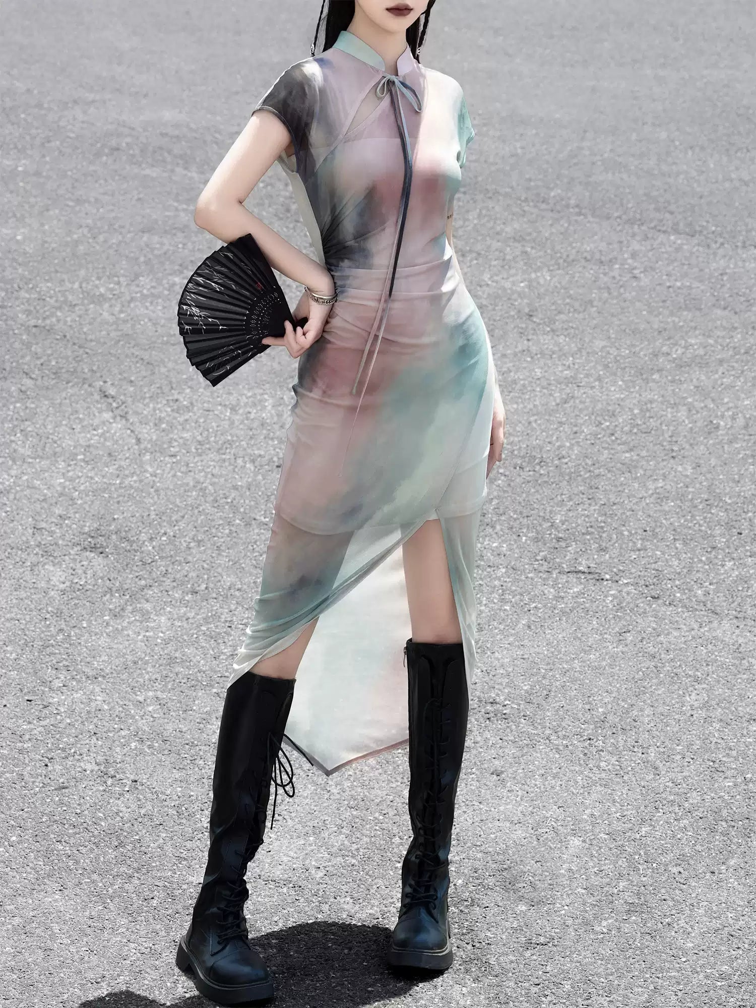 Ink Smudged Cheongsam Dress