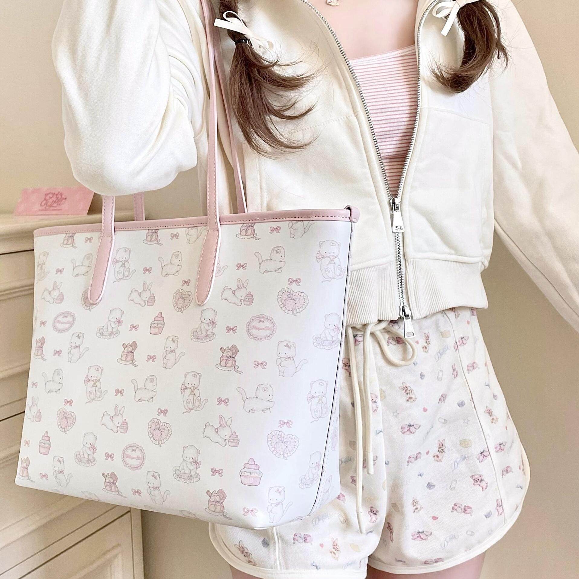 Adorable feline companions come to life on this charming handbag, perfect for cat lovers who want to express their playful personality. Featuring cute kawaii-style cat designs, this bag combines whimsy with everyday functionality. The spacious interior accommodates your essentials while the durable construction ensures lasting wear. Whether you're heading to work, school, or weekend adventures, this delightful accessory adds a touch of joy to any outfit. Carry a piece of cuteness wherever you go and let your love for cats shine through your style.