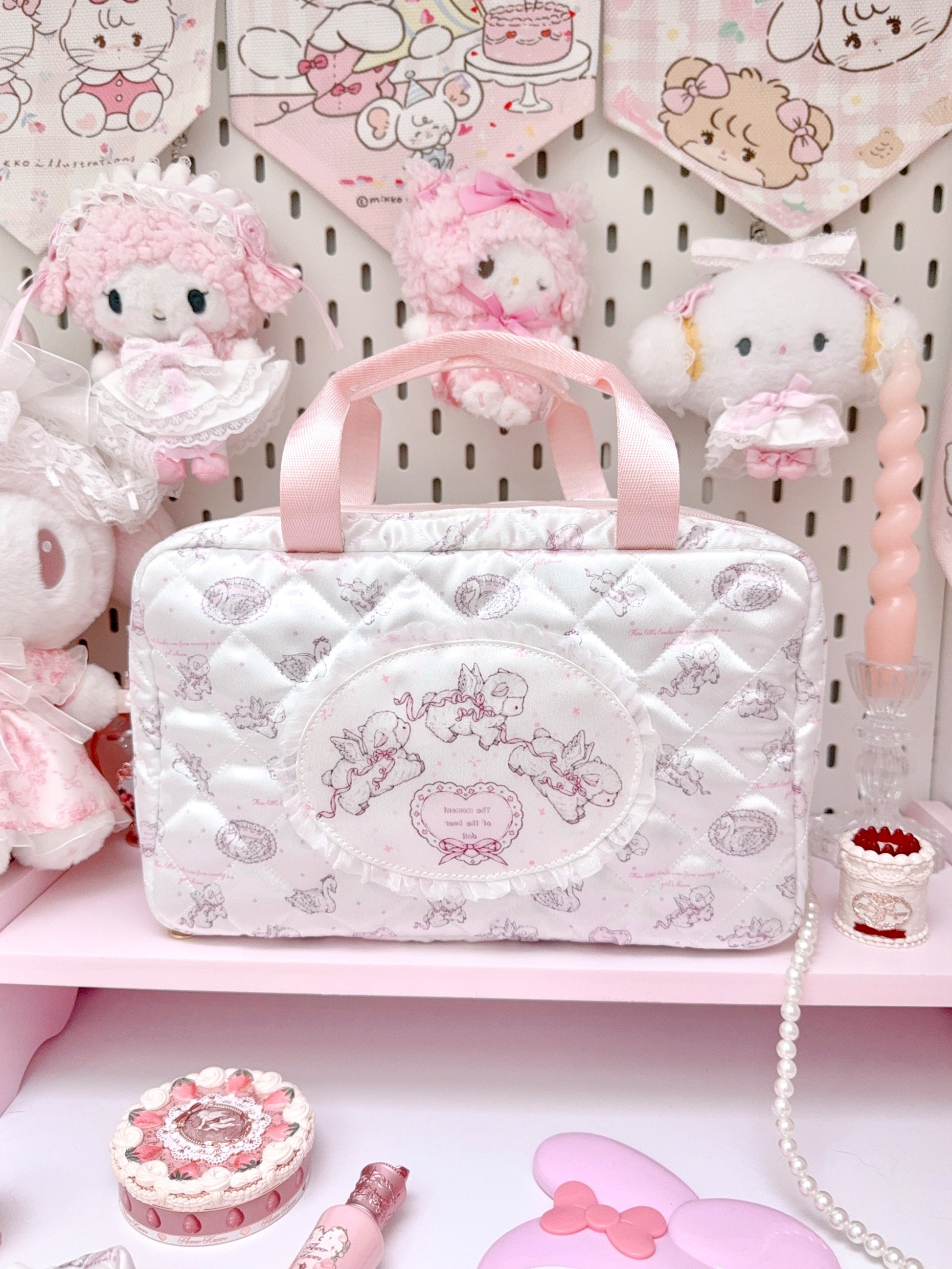 kawaii pink three-layer storage bag