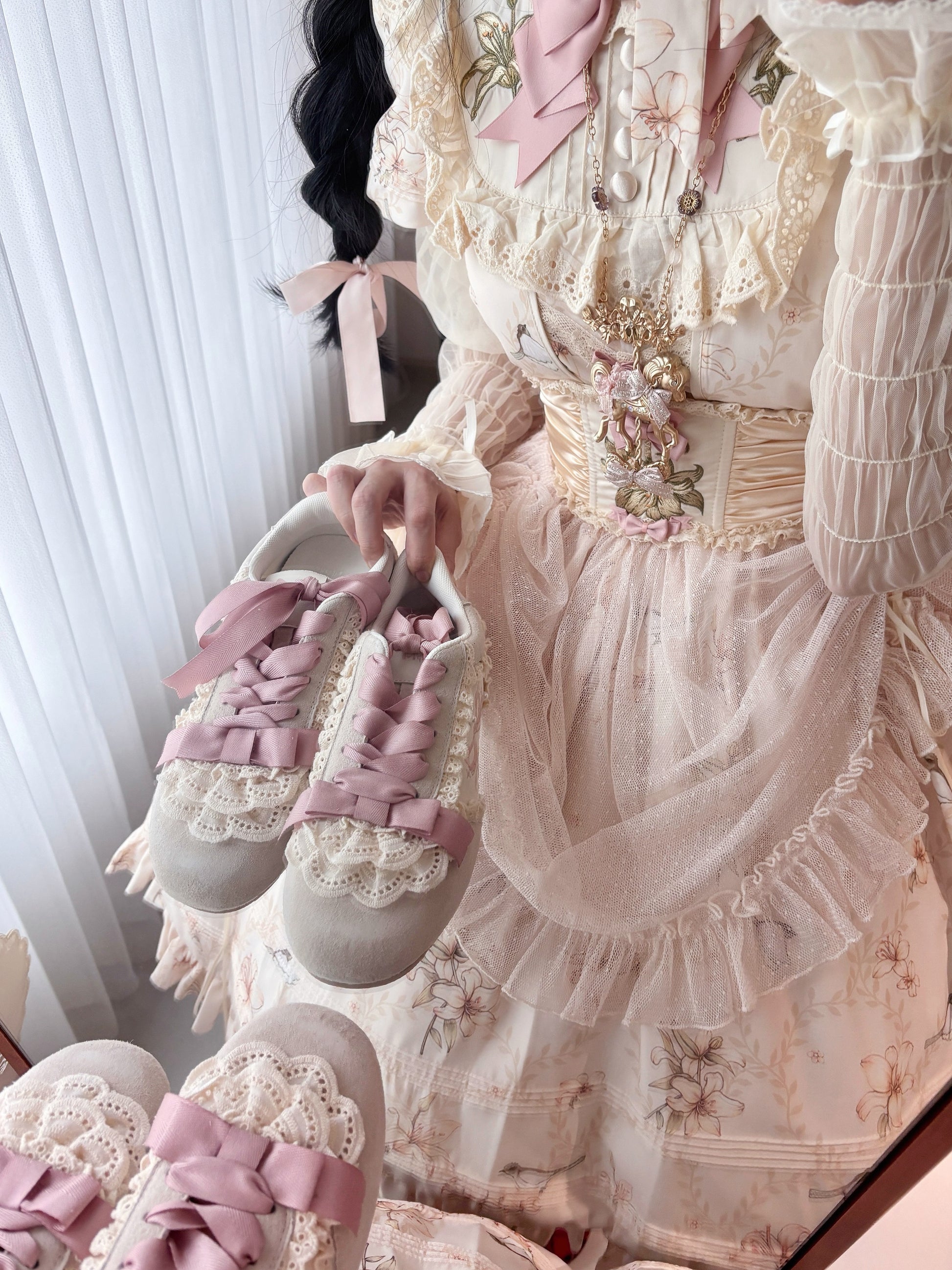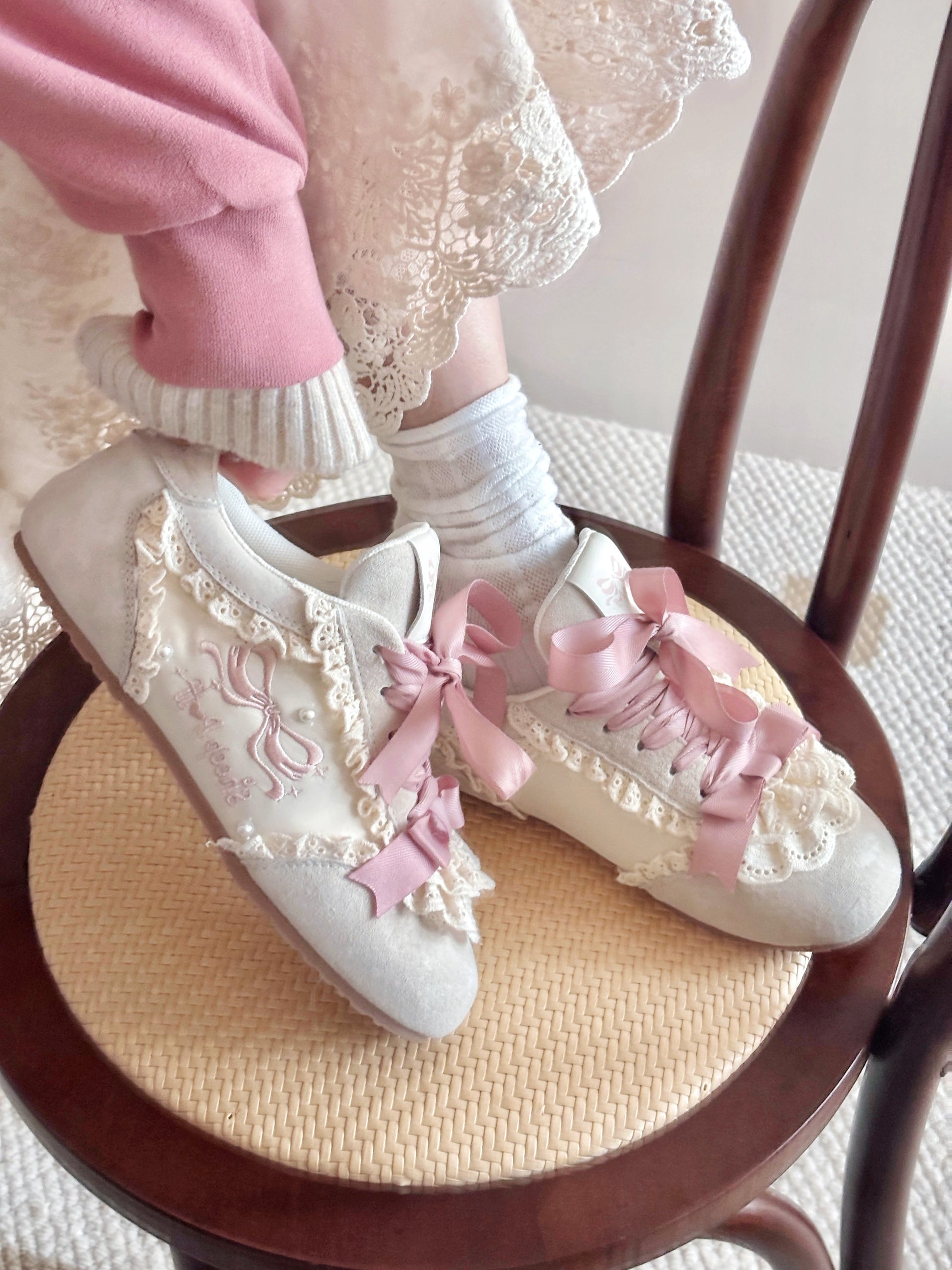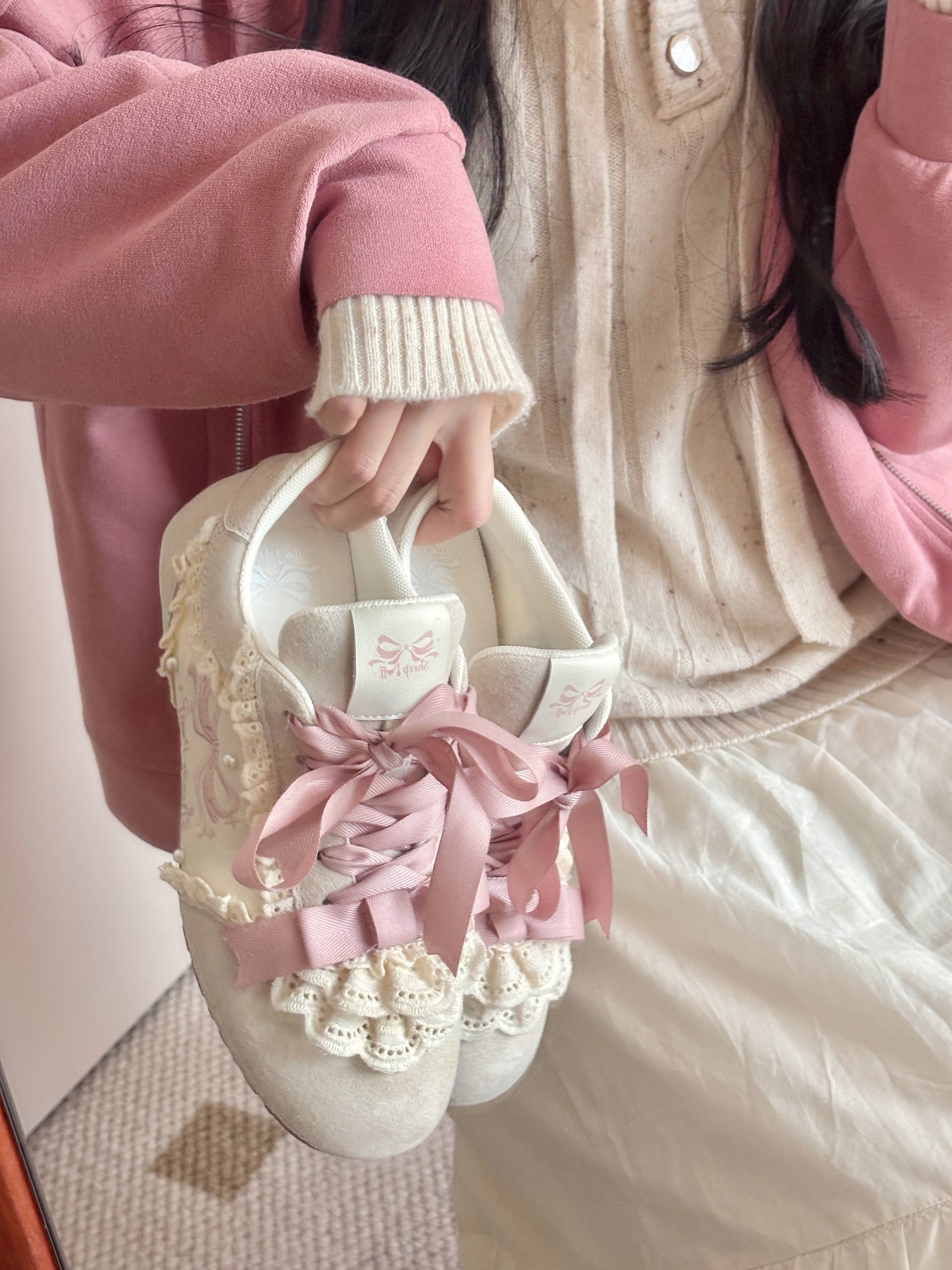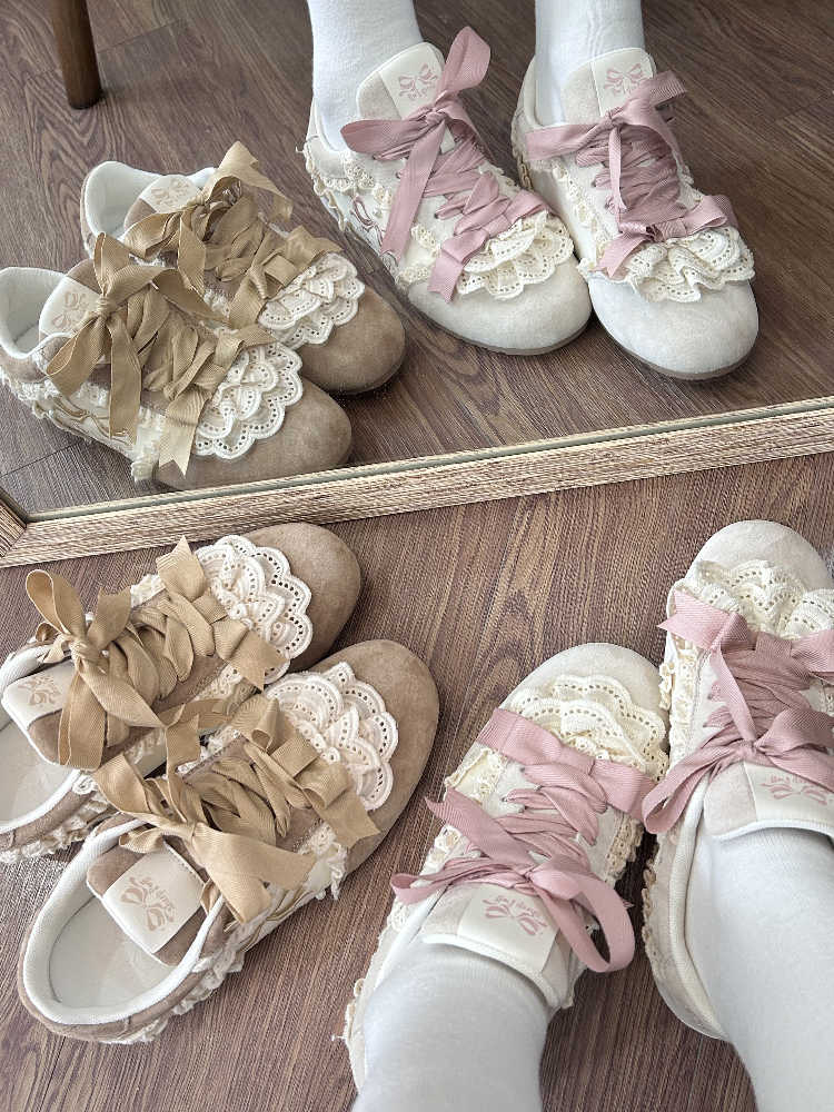 Step into elegance and comfort with Lace Cake Ballet Sneakers. These stylish sneakers blend delicate lace details with the classic ballet slipper silhouette, offering a unique look that’s perfect for everyday wear or special occasions. Lightweight and flexible, they provide all-day comfort while adding a touch of grace to your outfit. Elevate your footwear collection with these charming sneakers that marry fashion and function effortlessly.