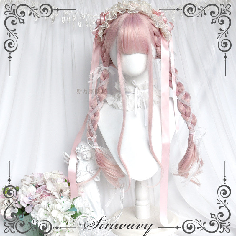 Light pink mixed yellow silk ballet style long curly hair