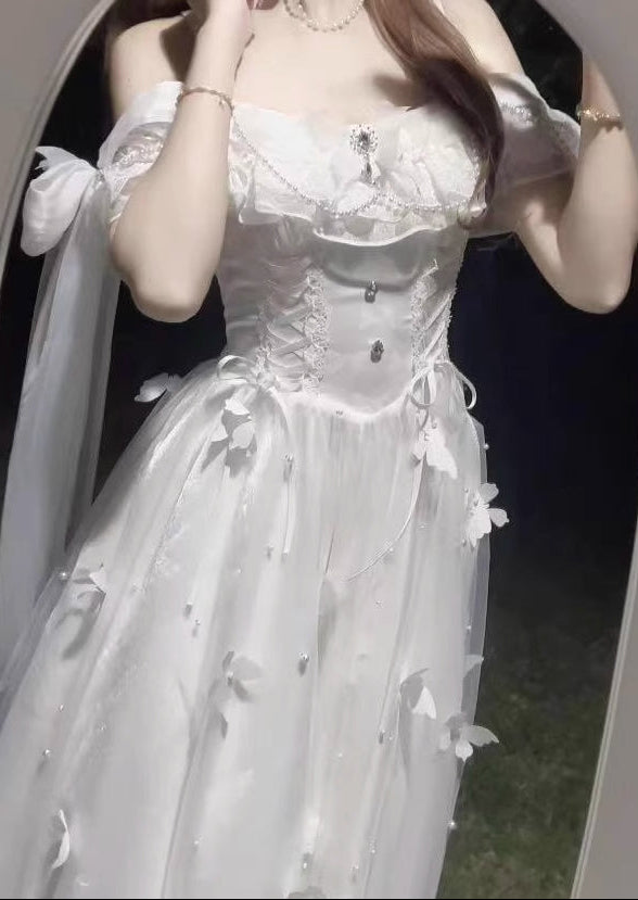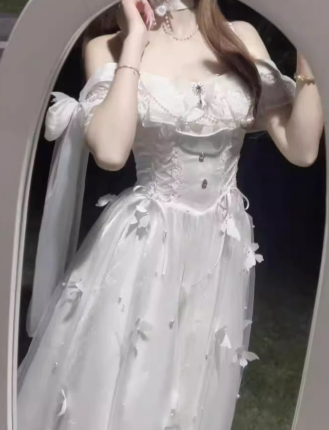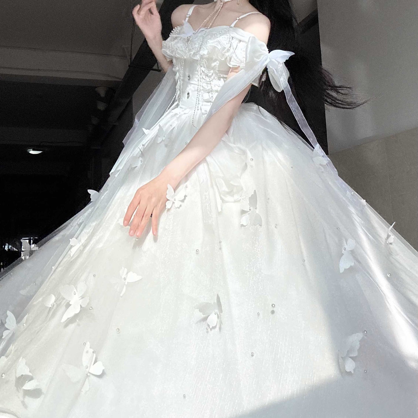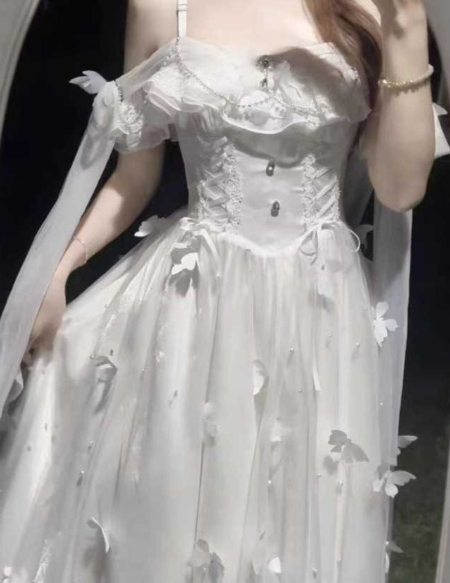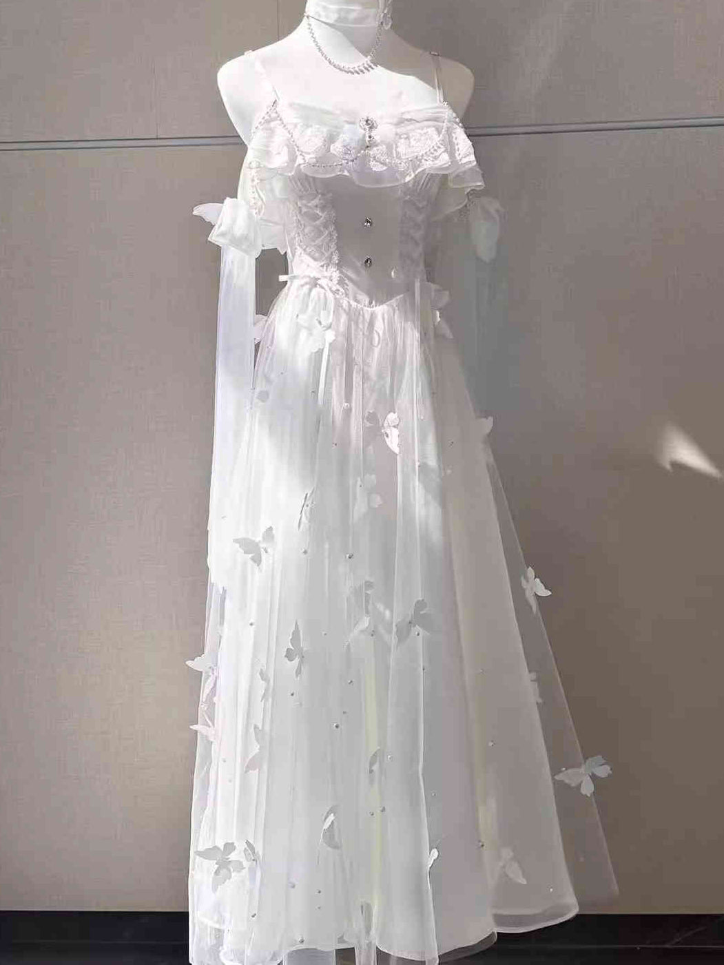 Looking for a dress that embodies magical elegance? Look no further than our Moonlight Butterfly Fairy Gauze Dress! Crafted with gauzy fabric and adorned with fluttering butterfly accents, this dress will make you feel like you've stepped into a fairytale. Perfect for special occasions and creating unforgettable memories.
