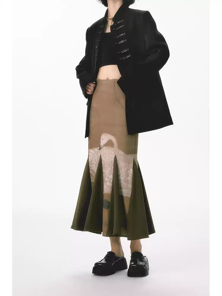 Embrace elegance with the New Chinese Style Flower Stretch Fishtail Skirt. Crafted to contour your silhouette, this skirt features delicate floral patterns that bring a touch of refined charm. Its stretchy fabric ensures comfort and ease of movement while the fishtail design adds a graceful, flowing finish perfect for any occasion. Elevate your wardrobe with a piece that blends cultural beauty and modern style seamlessly.