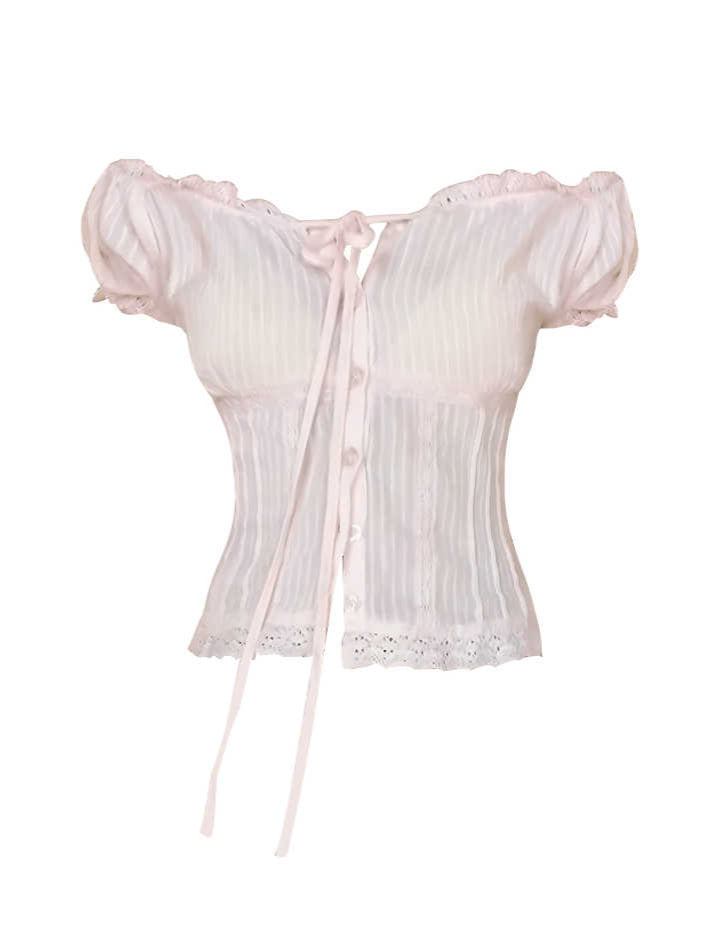 Elevate your style with the Off-shoulder Lace-up Coquette Top, designed to highlight your neckline and shoulders with a flattering off-shoulder cut. The delicate lace-up detail adds a touch of allure and allows for a customizable fit, ensuring comfort and confidence all day long. Perfect for both casual outings and special occasions, this top combines feminine charm with modern elegance to make you stand out effortlessly.