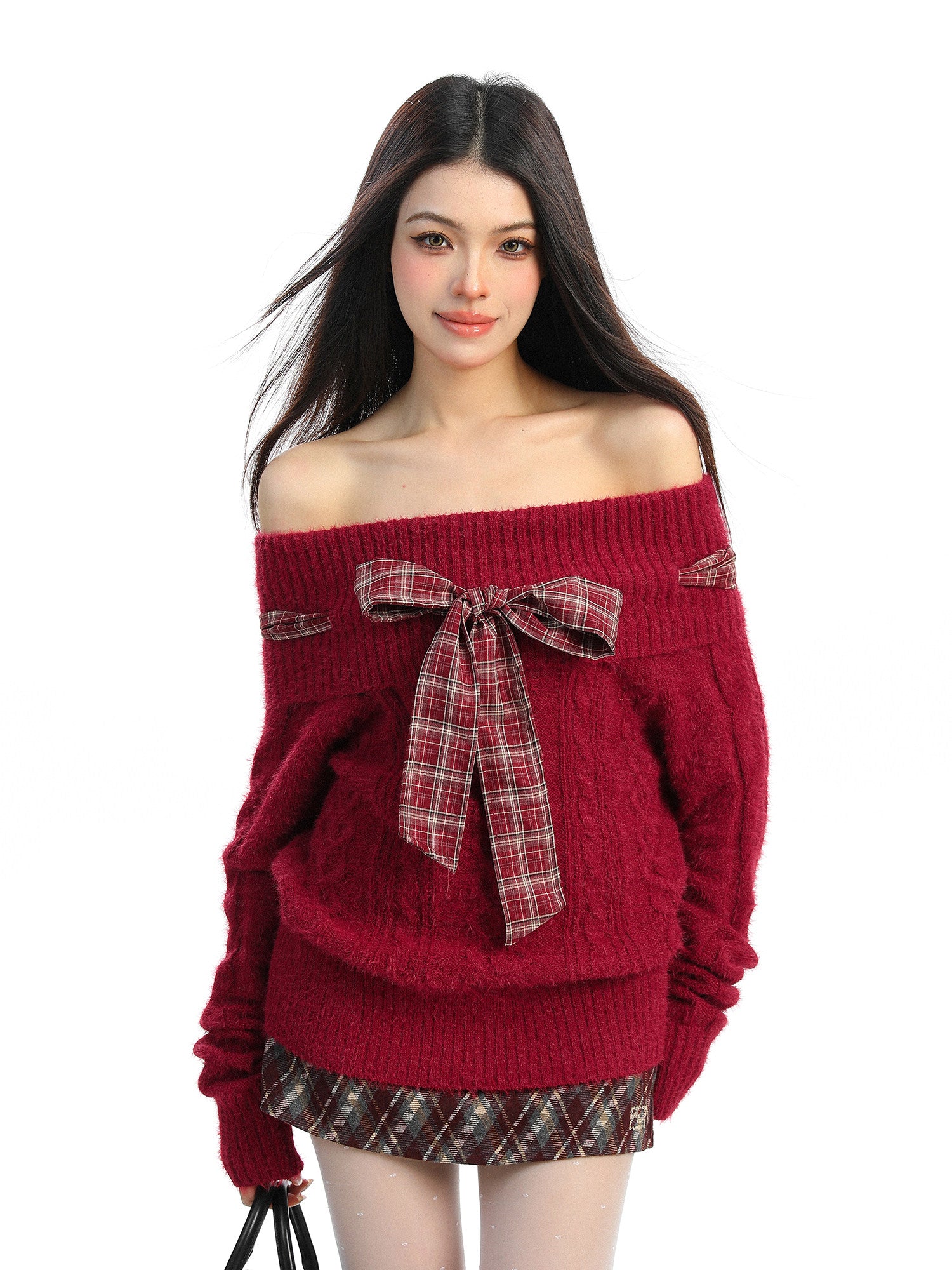 Embrace effortless elegance with this striking off-shoulder red sweater, complete with a charming bow detail. The soft knit fabric drapes beautifully across your shoulders, creating a flattering silhouette that transitions seamlessly from casual outings to evening gatherings. The signature bow accent adds a touch of playful sophistication, making this piece a versatile wardrobe essential. Perfect for layering or wearing solo, this sweater delivers both comfort and style in one captivating design.