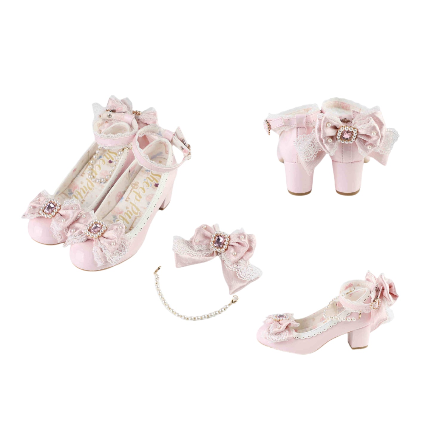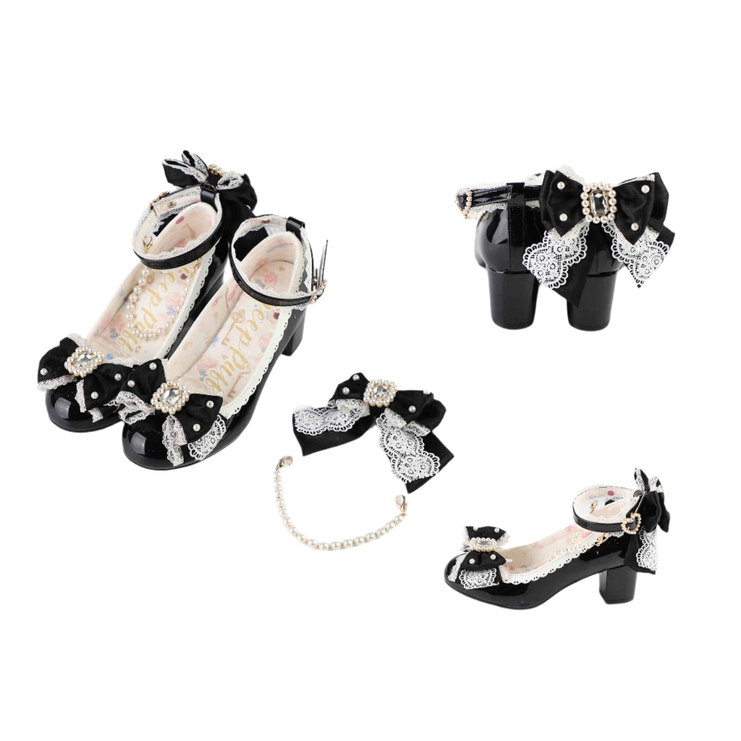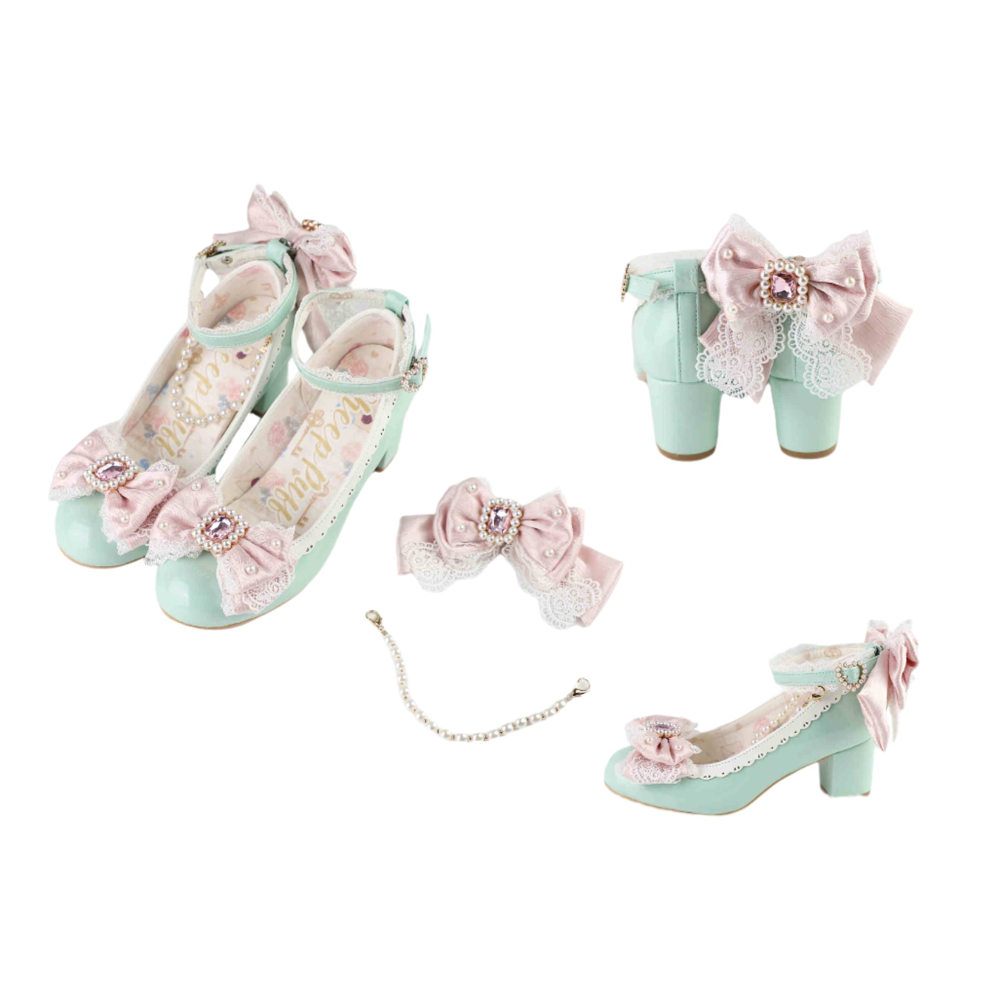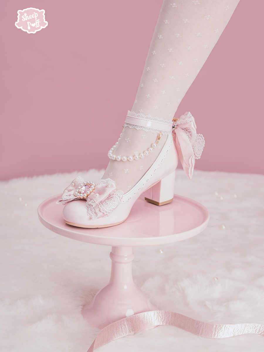 Pearl Bow Mid Heels Mary Jane