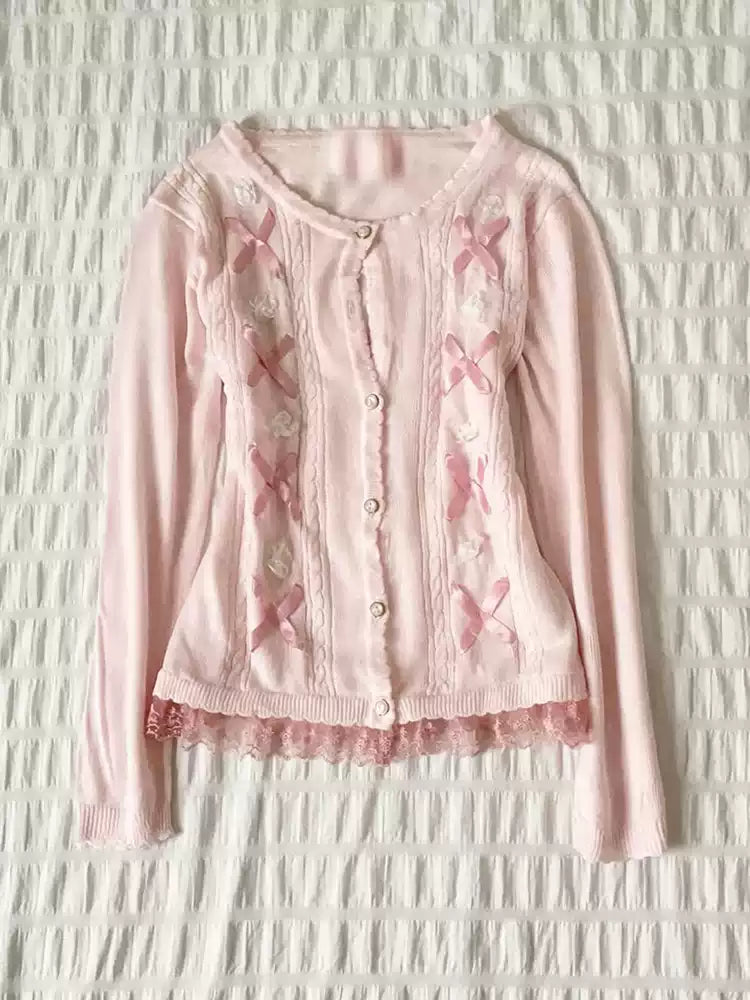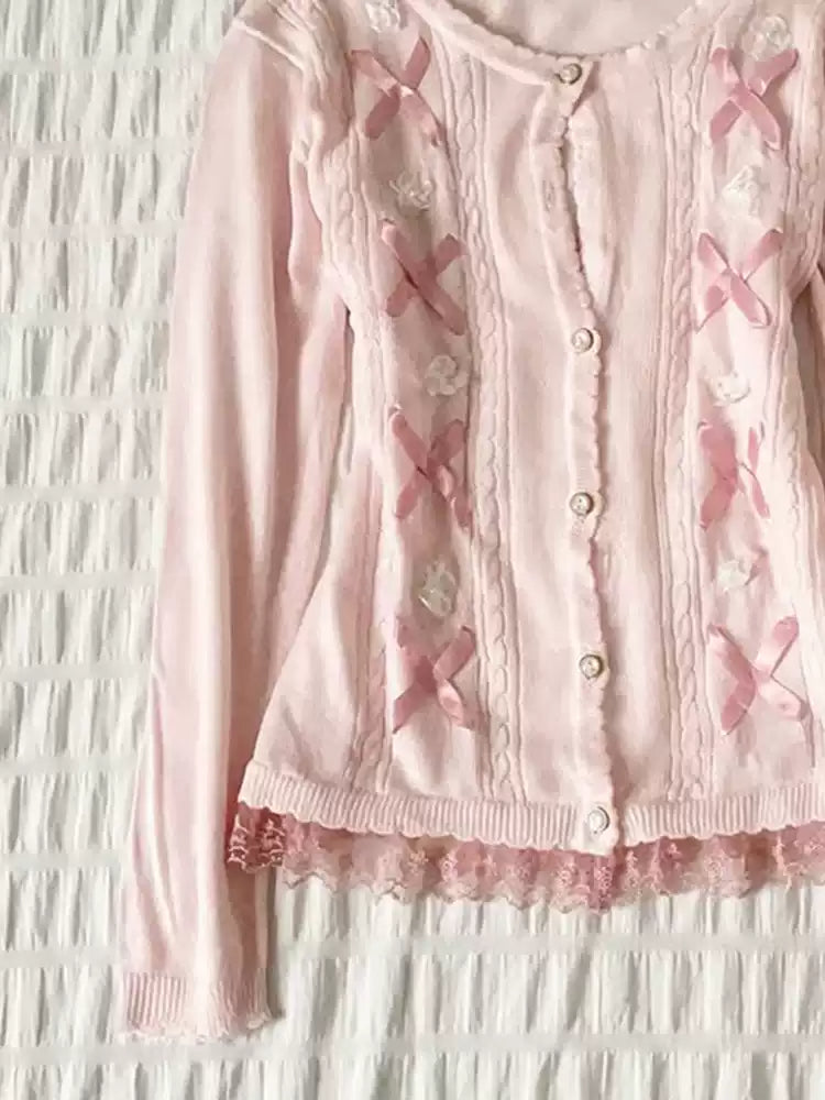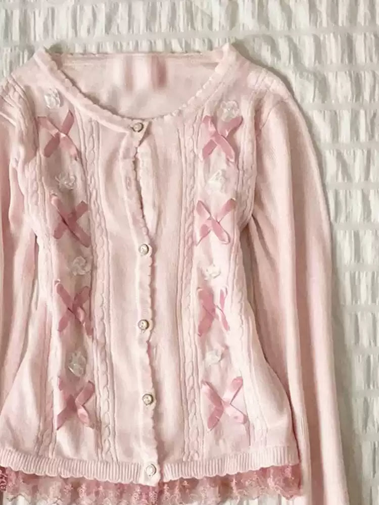 Wrap yourself in cozy charm with the Pink Bow Knitted Cardigan. Crafted from soft, warm fabric, this delicate cardigan features a playful bow detail that adds a touch of sweetness to your outfit. Perfect for layering on cooler days, it blends comfort and style effortlessly, making it an essential addition to your wardrobe. Embrace warmth and elegance wherever you go.
