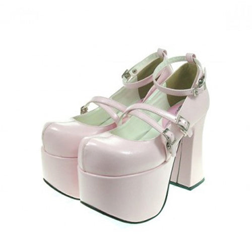 Pink Round Toe Scalloped Platform Heel High Lolita Shoes