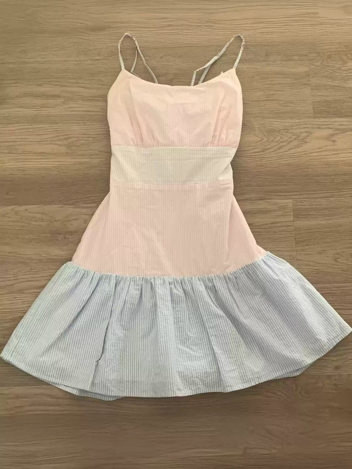 Pink striped suspender dress