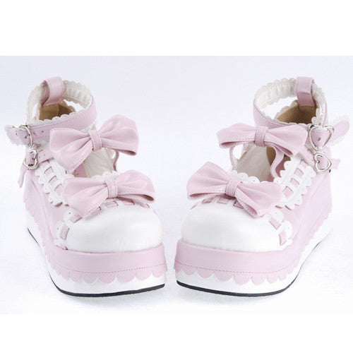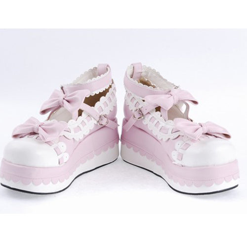Pink Synthetic Leather Round Toe Ankle Straps Bow Decoration Platform Lolita Shoes