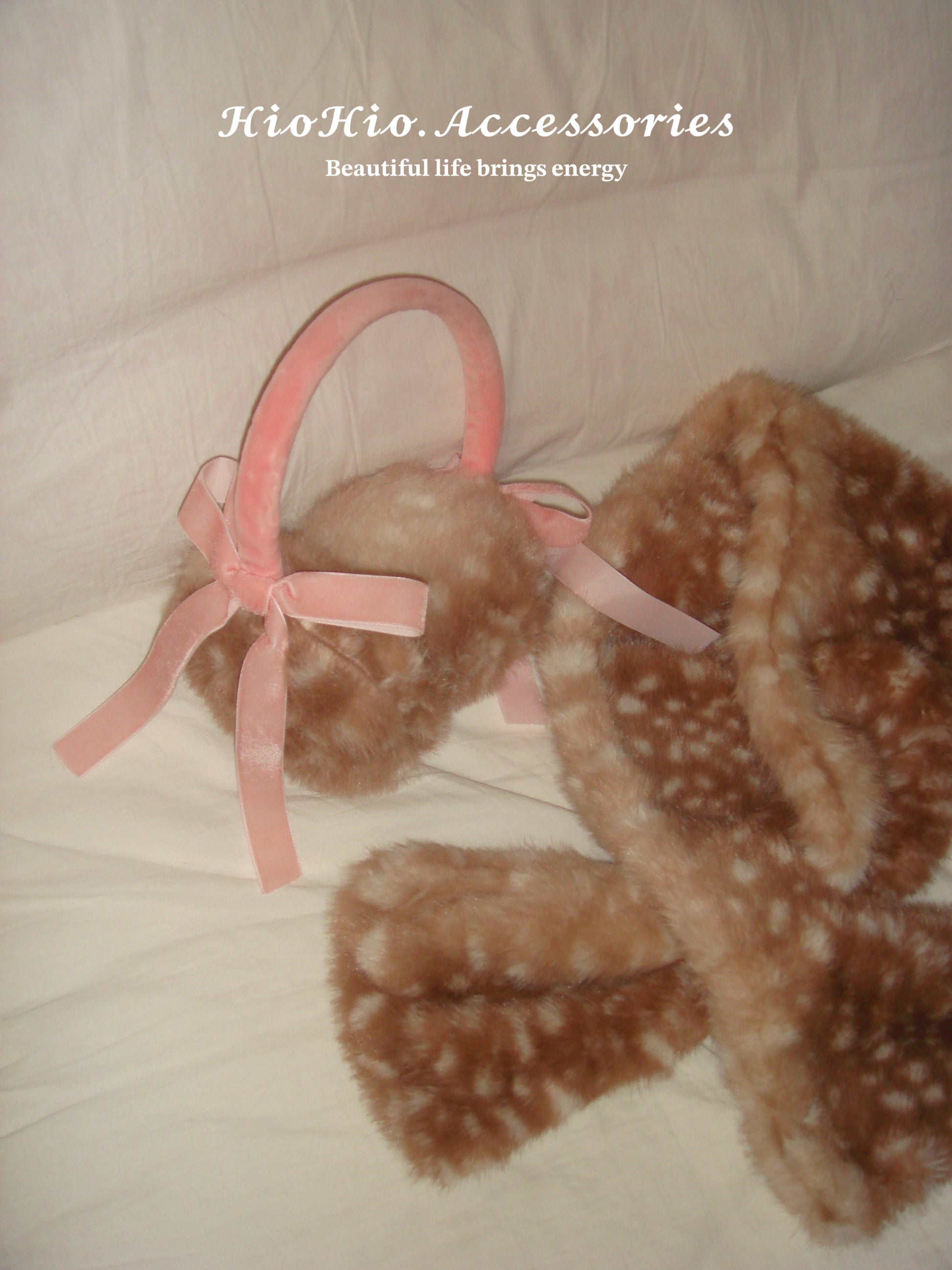 Pink Velvet Bow Plush Deer Kawaii Earmuffs