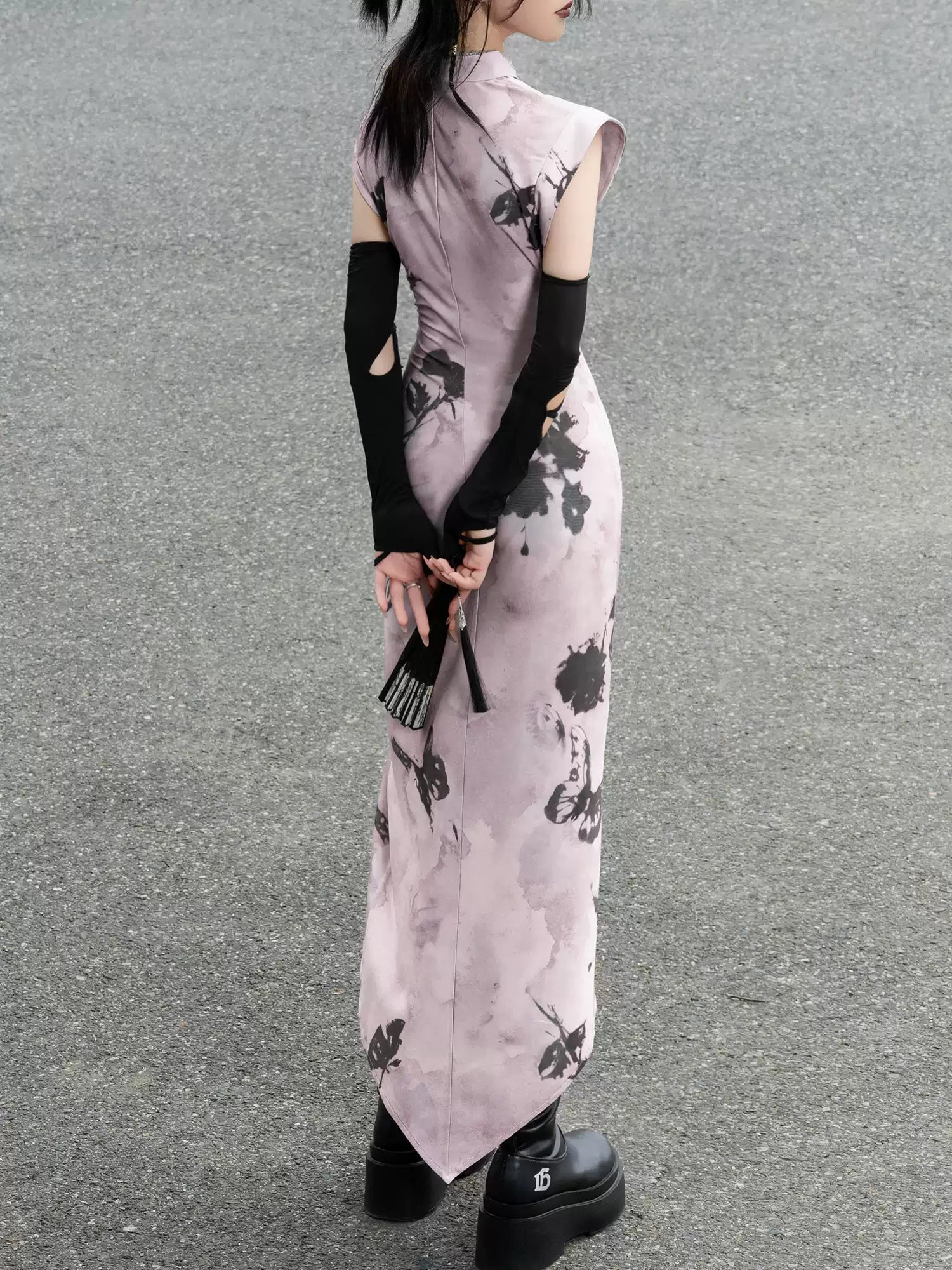 Purple Butterfly Knitted Cheongsam Dress