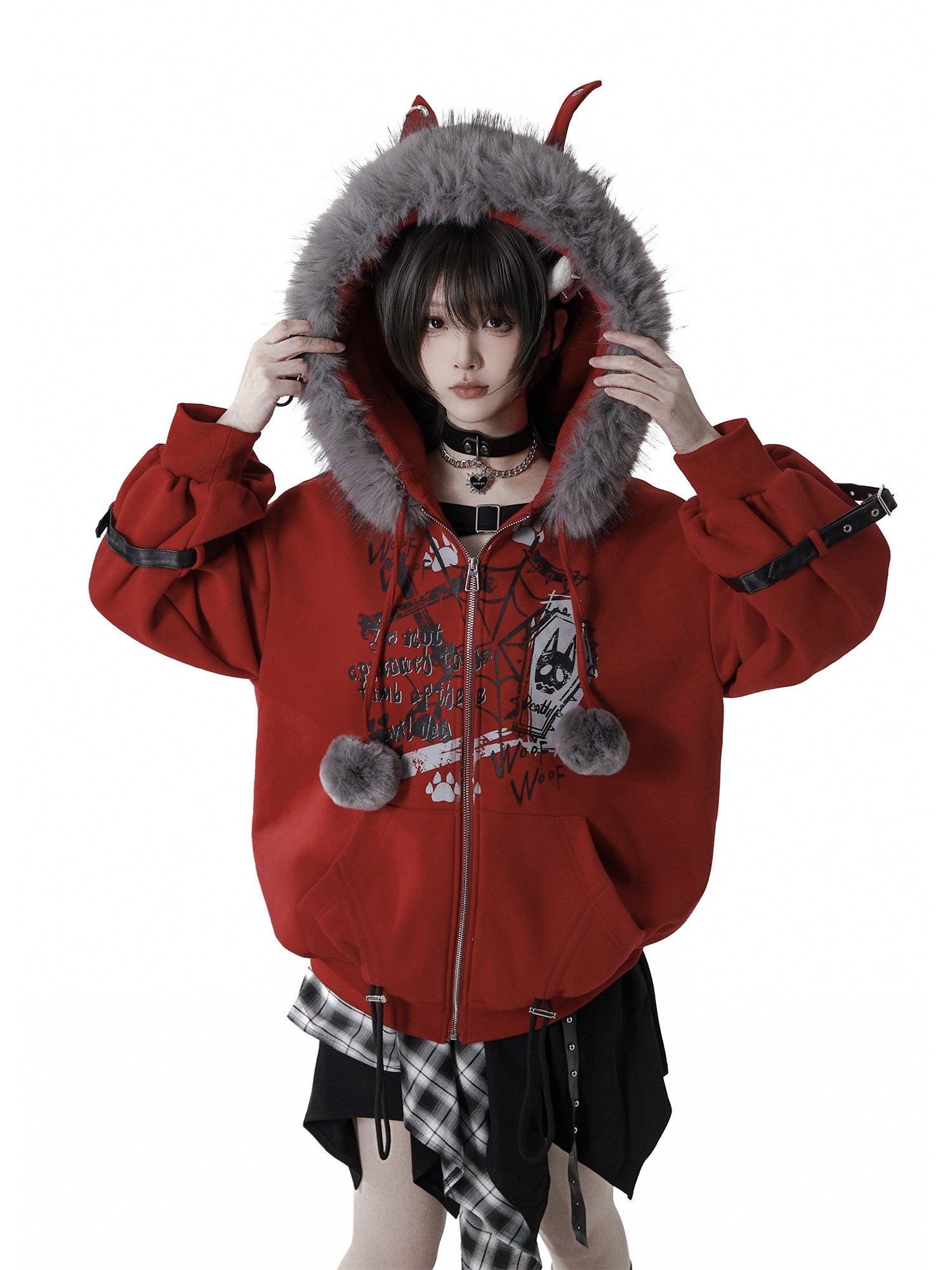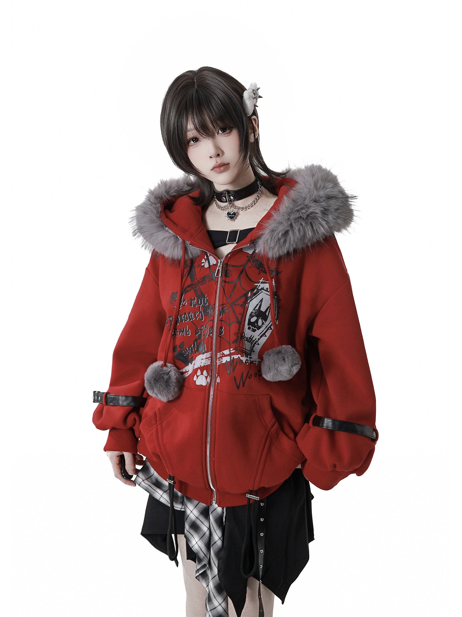 red fur hooded jacket
