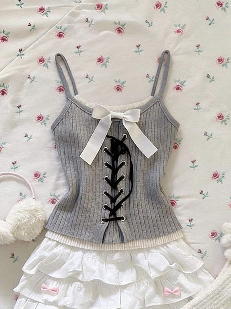 Slip into vintage vibes with this charming retro tank top! Featuring a classic gray and white color palette with an adorable bow detail, it's the perfect piece for channeling nostalgic style. The lightweight tank silhouette keeps you cool and comfortable, while the playful bow adds that sweet, feminine touch. Whether you're dressing up a casual look or going full retro mode, this tank brings effortless charm to any outfit. A wardrobe essential for anyone who loves a little throwback flair!
