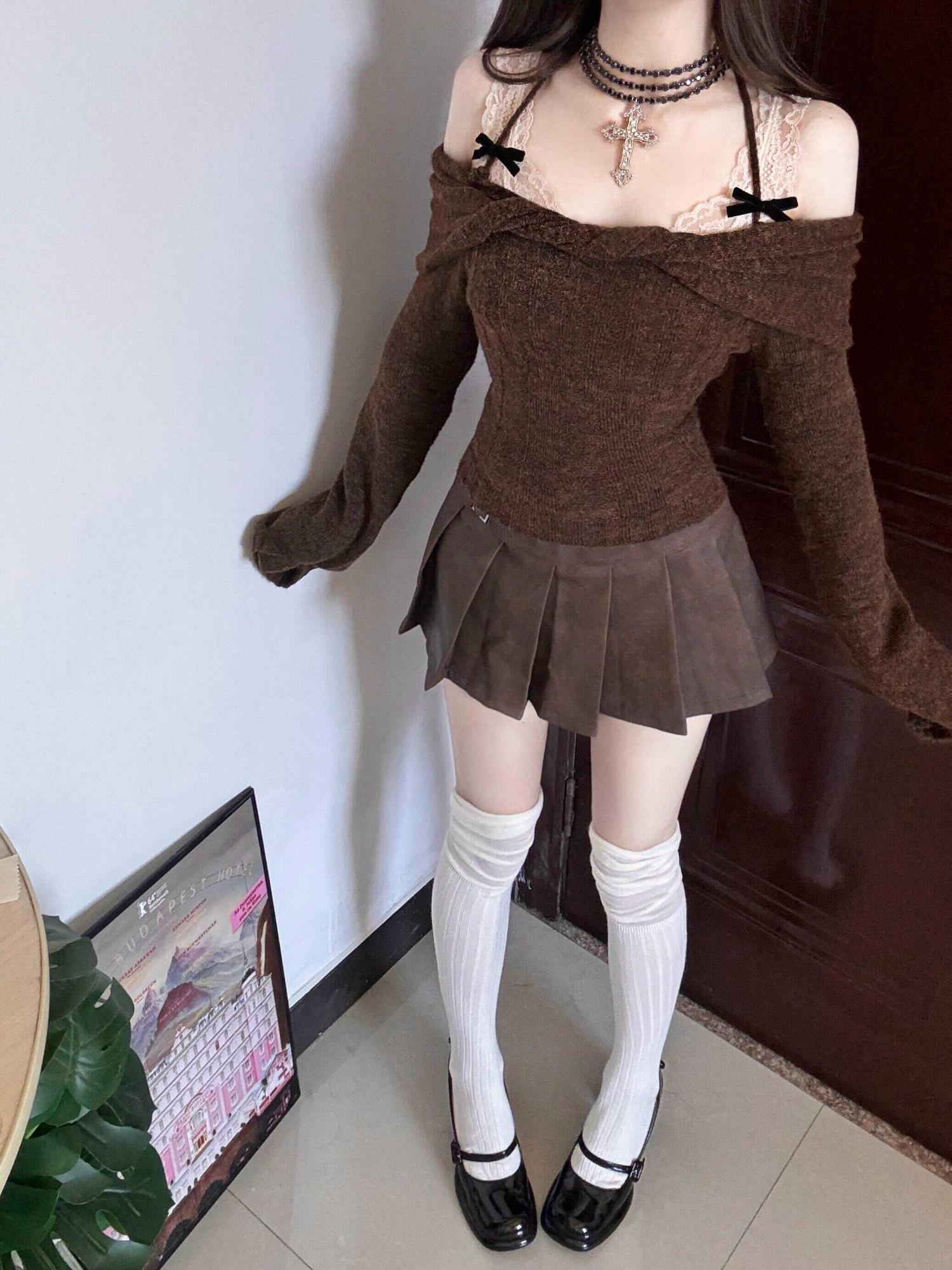 Embrace vintage charm with this retro one-shoulder brown sweater, featuring elegant bow details that add a playful yet sophisticated touch. Its unique asymmetric design highlights your neckline beautifully, making it perfect for standing out in any setting. Soft, warm fabric ensures comfort throughout the day, while the rich brown hue seamlessly complements your wardrobe. Elevate your style with this distinctive sweater that blends classic appeal and modern flair effortlessly.