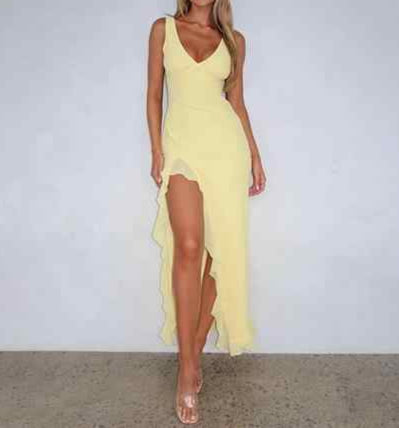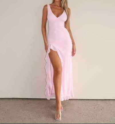 Elevate your style with our elegant Ruffled Slit Halter-neck Dress! Embrace the flowy ruffled design and flirty slit that add a touch of romance to your look. The halter-neck enhances your neckline and elongates your figure, making you feel confident and beautiful. Perfect for any special occasion or a night out on the town!