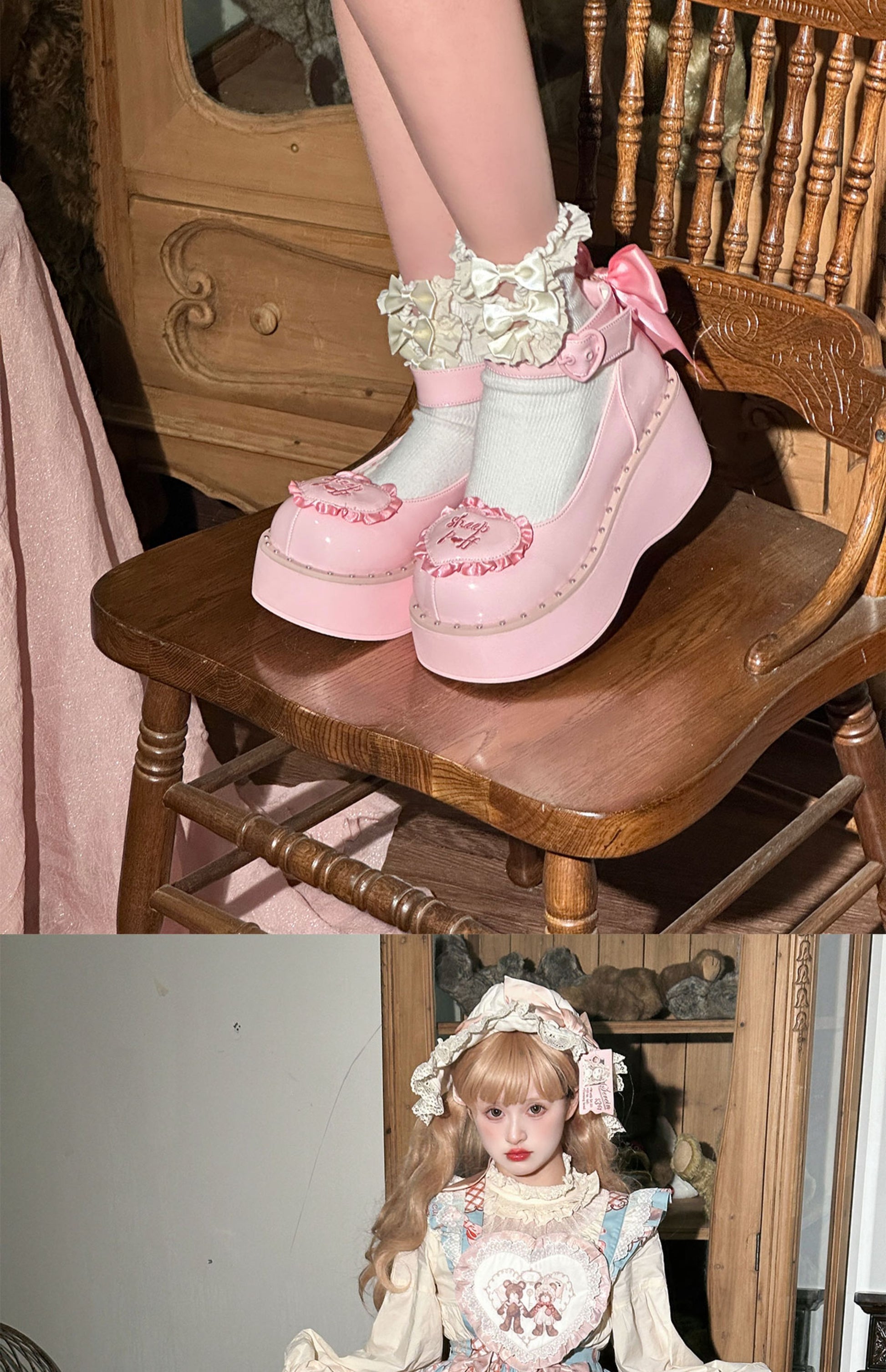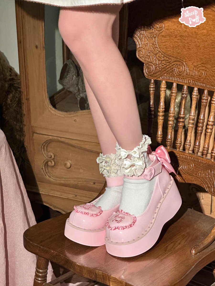 Step into whimsical charm with the Sheep Puff Lolita Bow Platform Shoes. Featuring a playful puff design and a delicate bow accent, these shoes elevate any outfit with a unique blend of cuteness and bold style. The platform sole adds height and comfort, making them perfect for all-day wear. Embrace your individuality and make a statement wherever you go with these eye-catching, fashion-forward shoes.