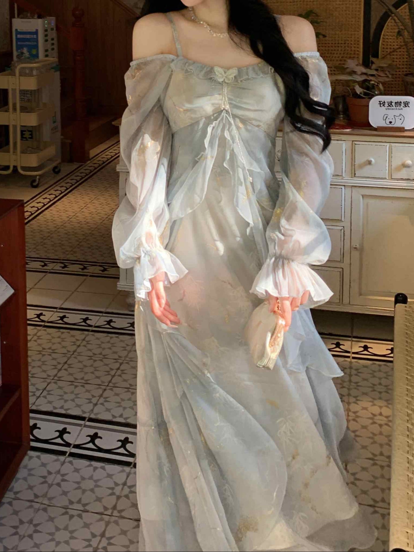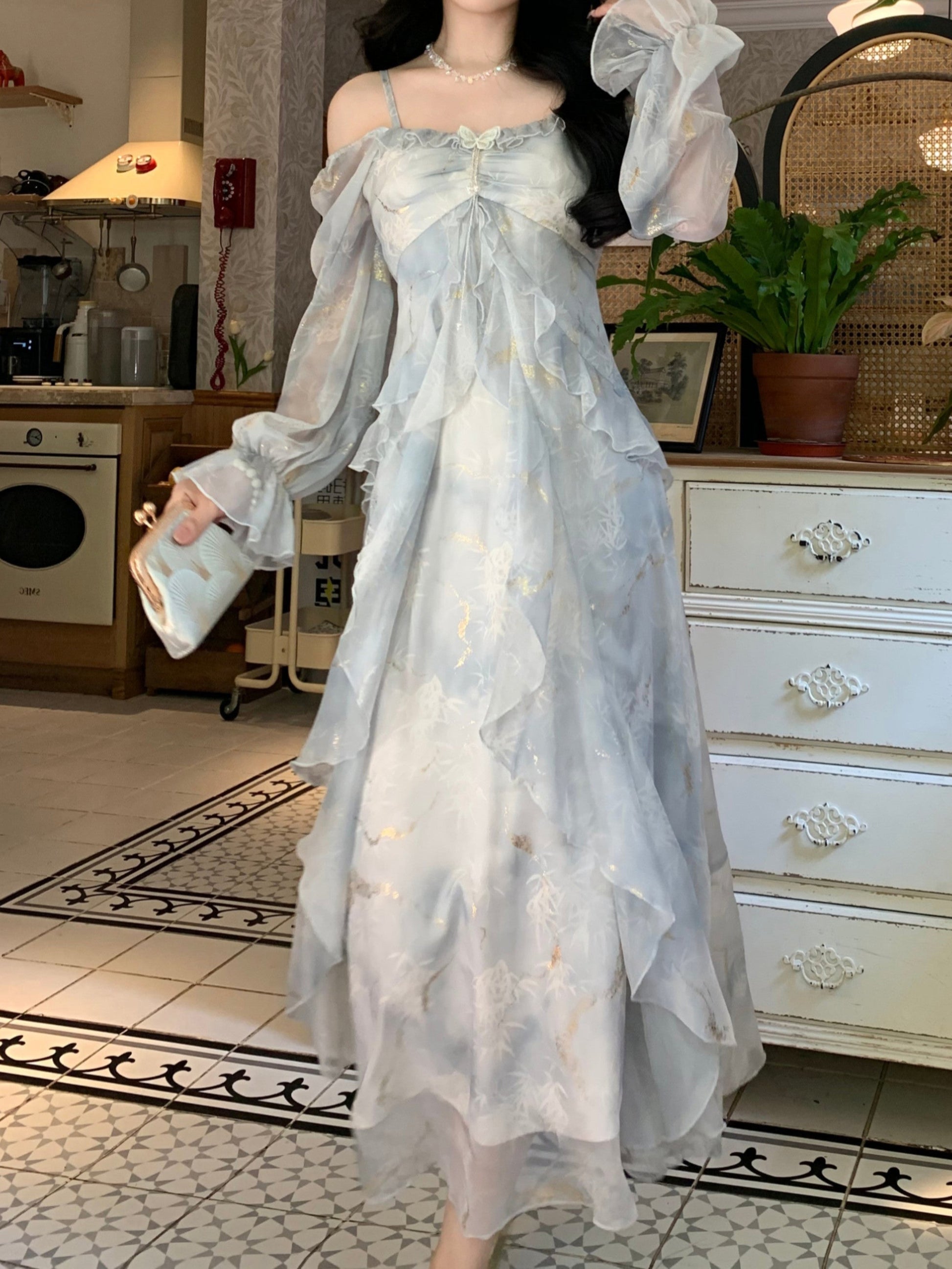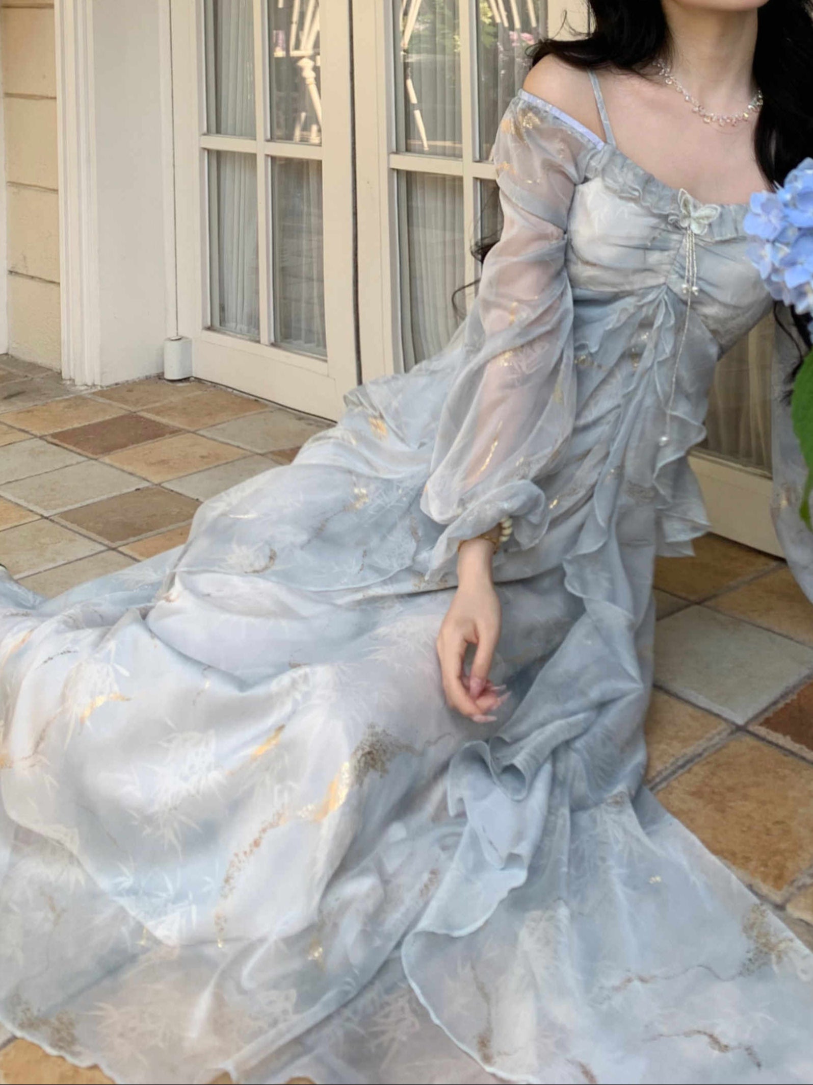This ethereal dress features a unique butterfly bronzing pattern and delicate ruffled details, evoking a whimsical and magical feel. Perfect for a dreamy summer day or a fantasy-themed event, this dress will make you feel like a fairy in every step!