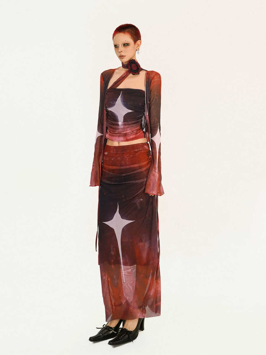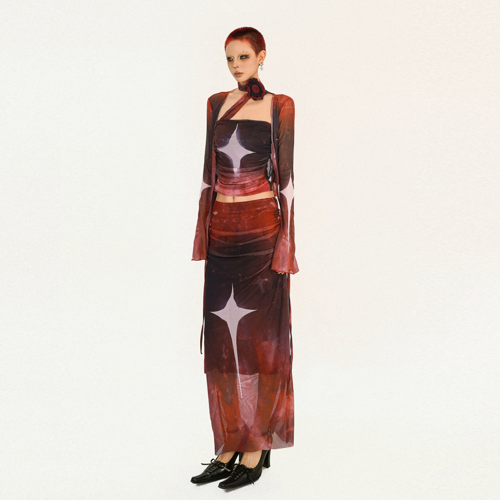 Elevate your style with the Star Mesh Print Skirt, featuring a delicate mesh fabric adorned with a charming star pattern. This skirt offers a perfect blend of playful elegance and breathable comfort, making it ideal for both casual outings and special occasions. Its lightweight design ensures ease of movement while adding a touch of celestial flair to your wardrobe. Embrace a unique look that effortlessly captures attention wherever you go.