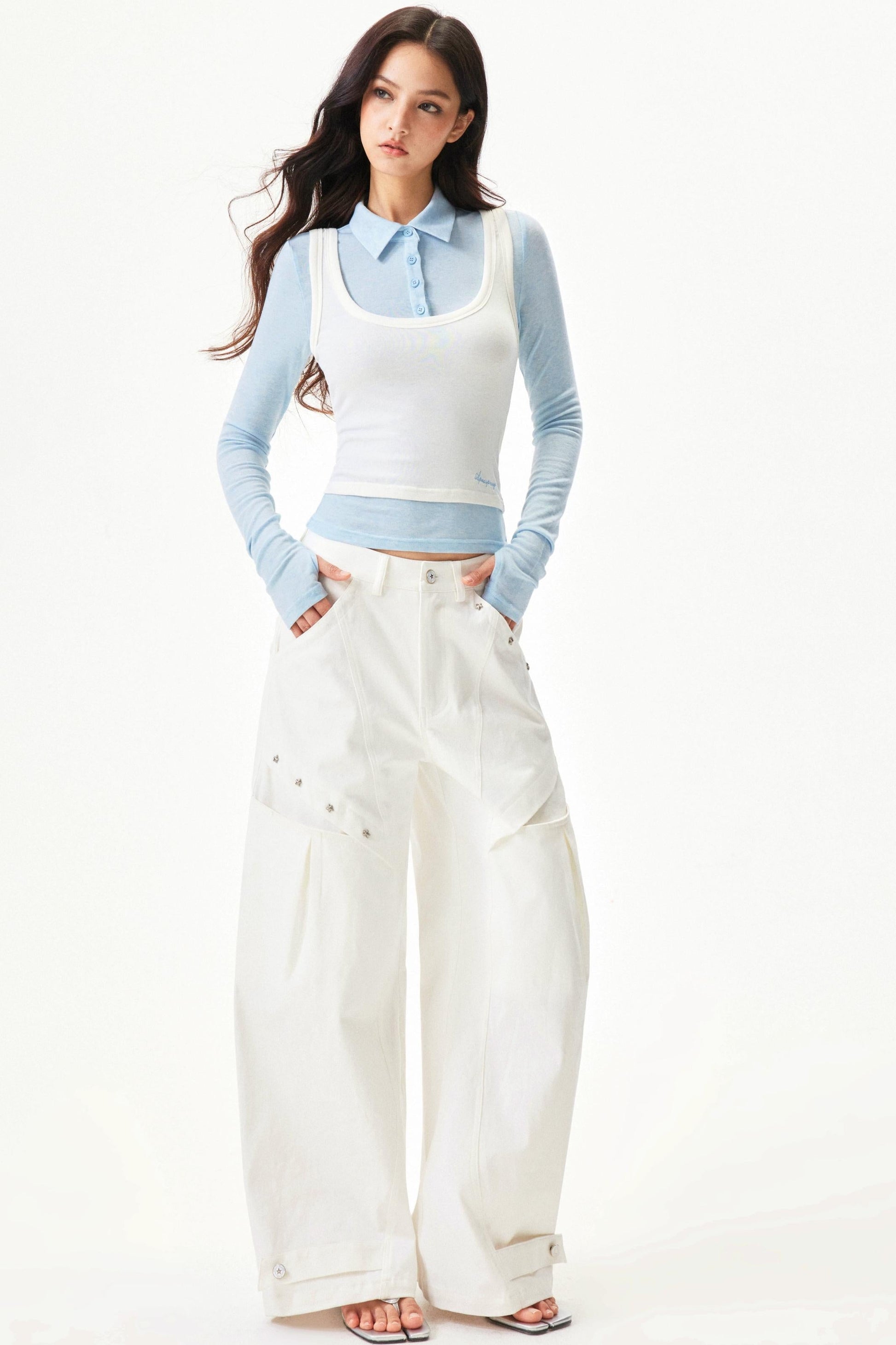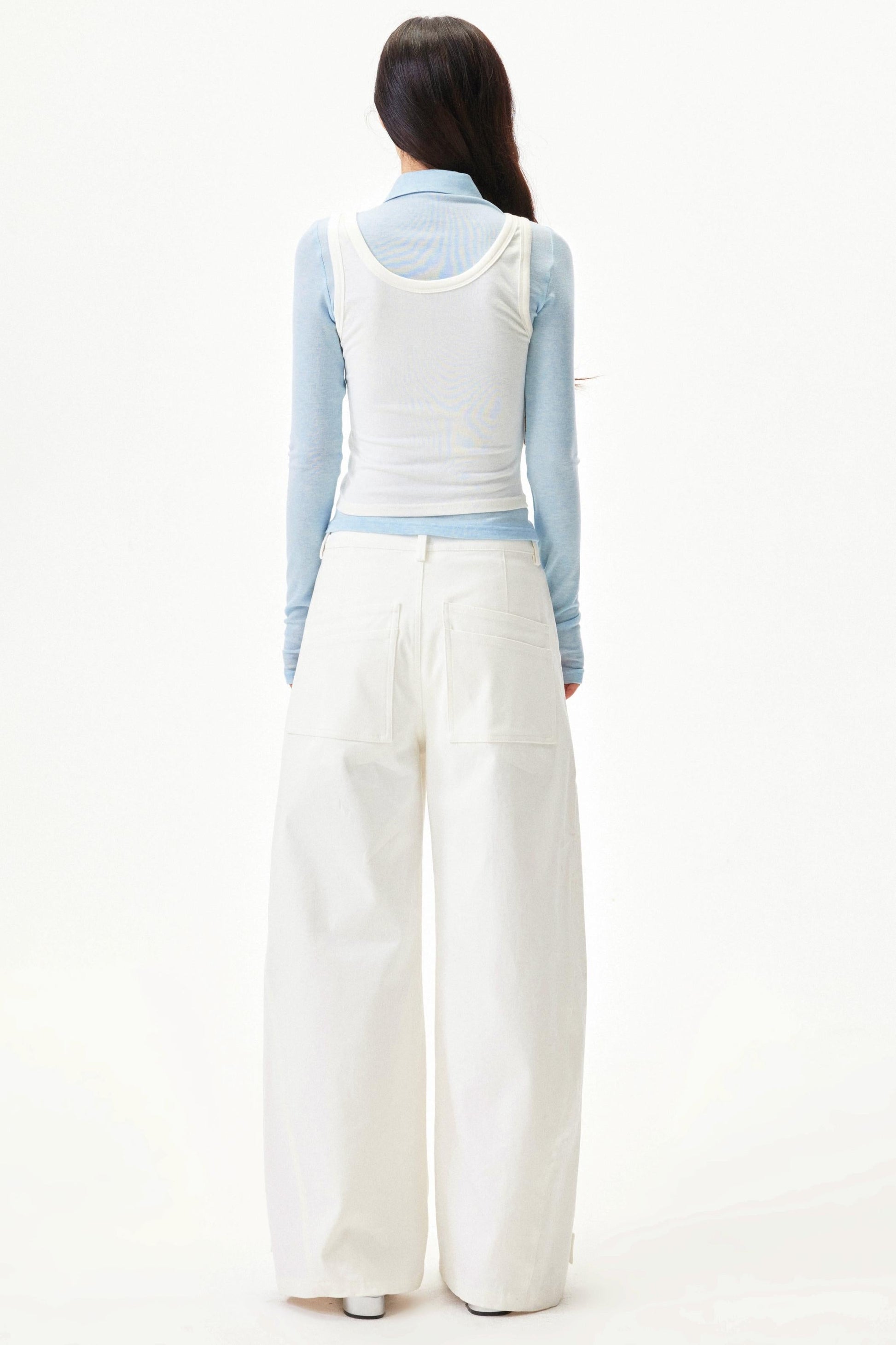 Elevate your wardrobe with these star knit deconstructed twill pants, where contemporary design meets comfortable style. Featuring a relaxed wide-leg silhouette and thoughtfully deconstructed details, these pants offer an effortlessly chic aesthetic perfect for modern fashion enthusiasts. The blend of knit and twill creates an intriguing textural contrast, while the loose fit ensures all-day wearability. Available in sizes S through L, these versatile pants transition seamlessly from casual outings to elevated everyday looks.