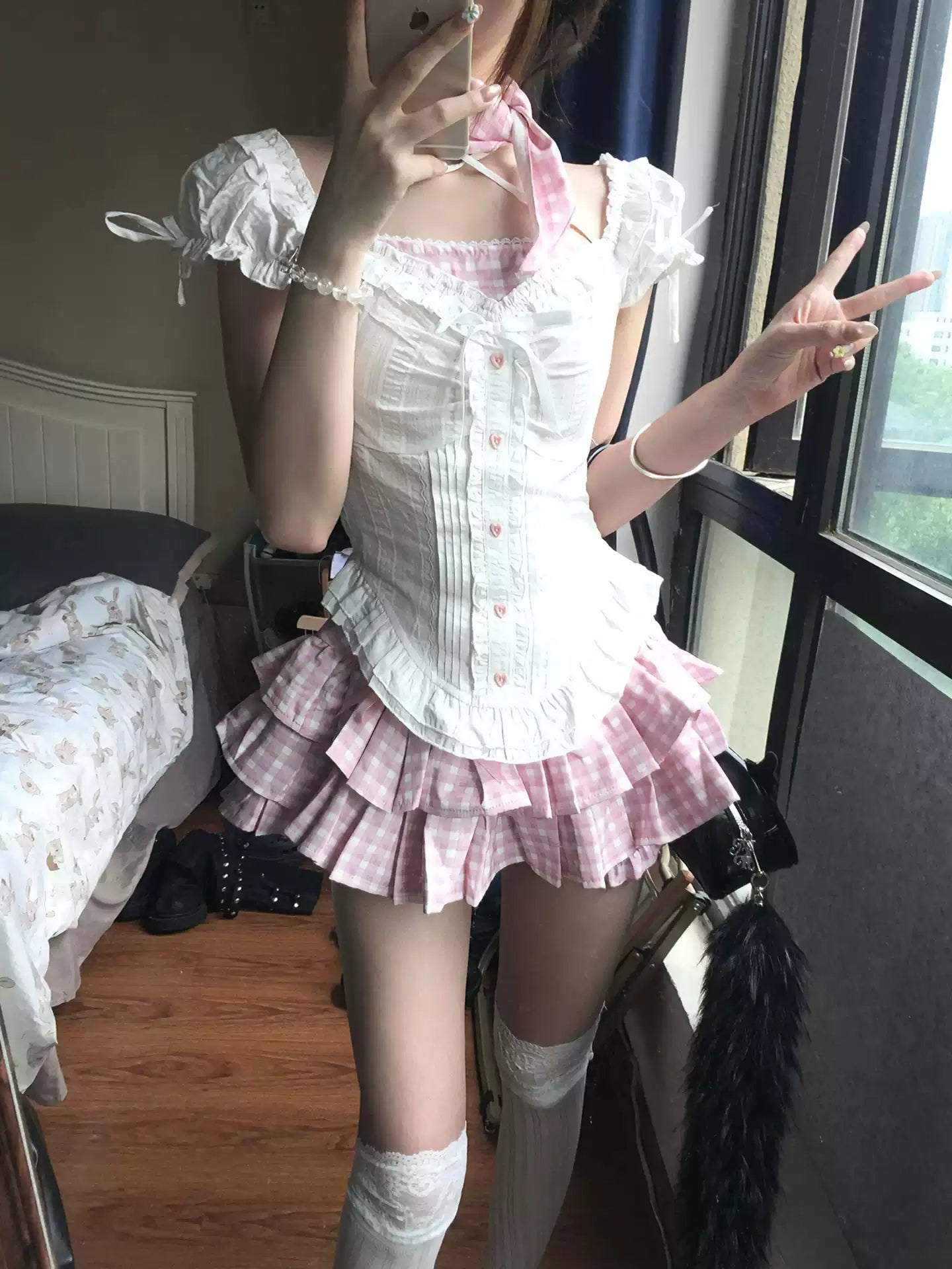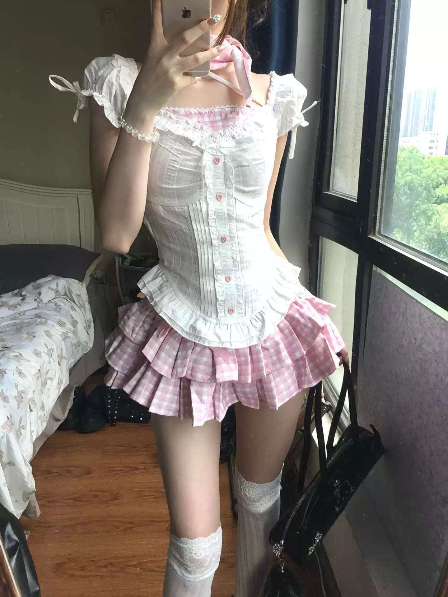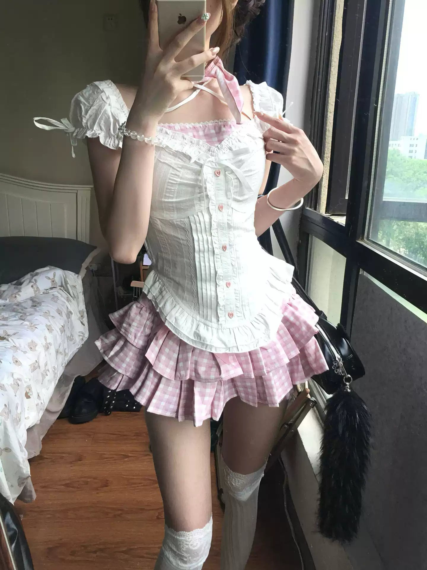 Sweet Pink Cake Skirt Two-piece Summer Set