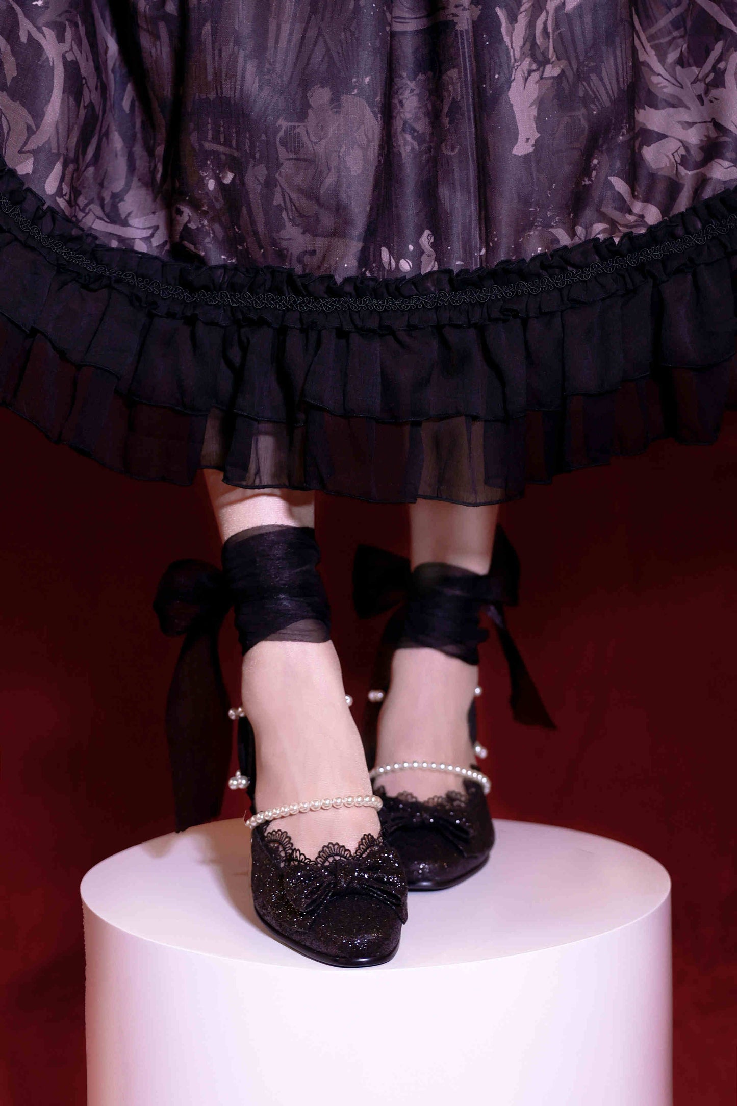 Velvet Sequined Satin High Heels