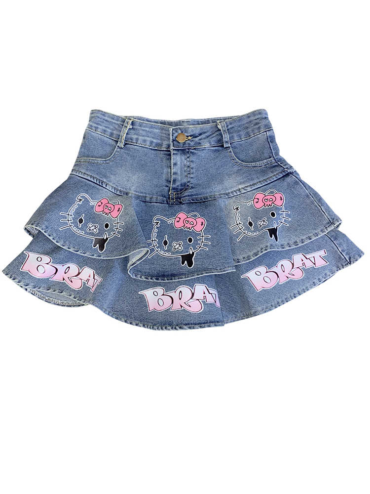 Y2K Kitty Denim Skirt