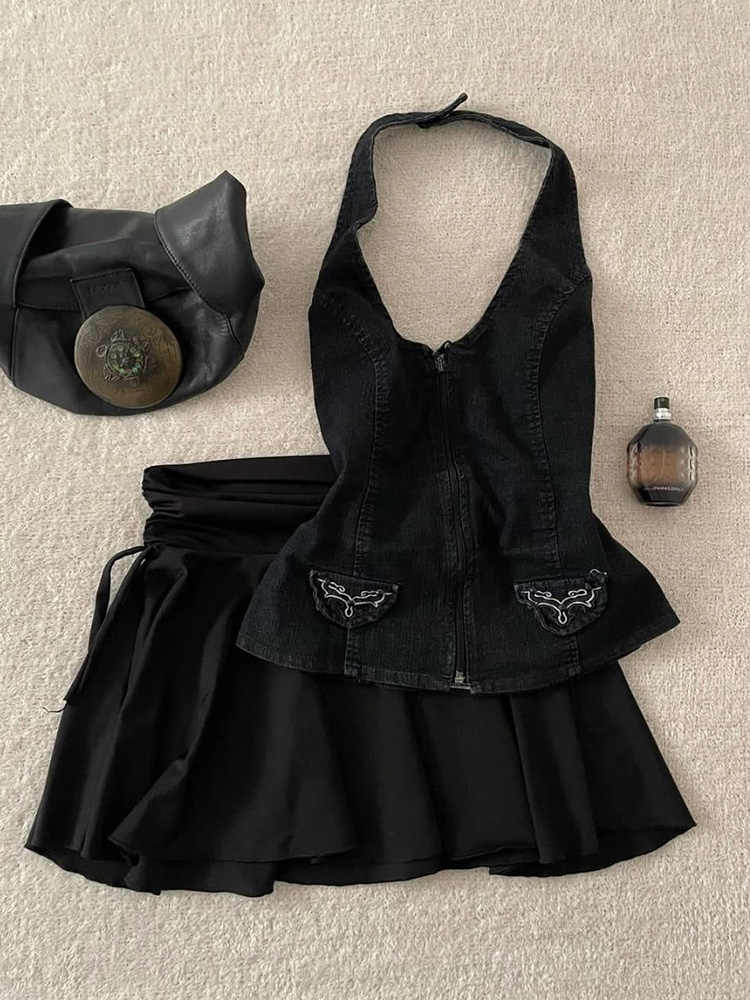 Step back into the iconic Y2K era with this Retro Black Denim Coord. Crafted for a bold, confident look, this set combines classic black denim with a modern fit that flatters every silhouette. Perfect for making a statement, it pairs effortlessly with your favorite accessories to elevate your style. Embrace nostalgia while staying fashion-forward with this must-have coord.